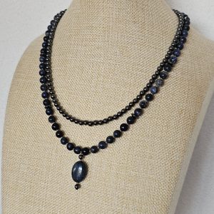 Sautoir en tourmaline noire et quartz tourmalineSautoir en tourmaline noire et quartz tourmaline