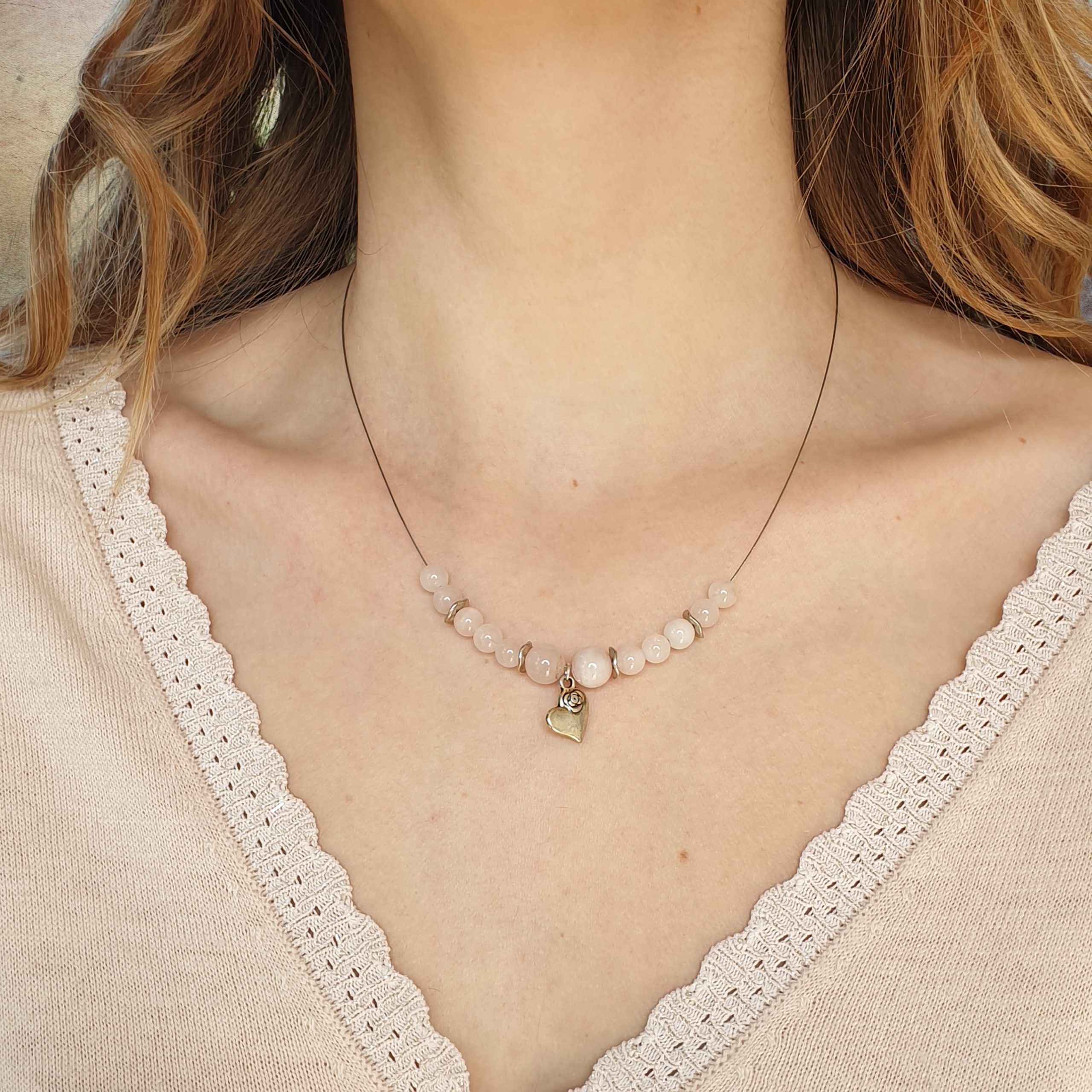 Fabriqué à la main dans notre atelier en Suisse, le demi-collier en pierres naturelles de quartz rose est d’un rose très clair. En lithothérapie*, le quartz rose symbolise l’amour, la paix, et l’acceptation. Il apporterait douceur, tendresse, amour et confiance en soi. Le quartz rose est associé au chakra du cœur et, bien qu’il ne soit incompatible avec aucun signe astrologique, il est particulièrement adapté pour les signes Taureau, Balance, Poissons. N’hésitez pas à consulter le guide des tailles pour vous aider à choisir votre collier.