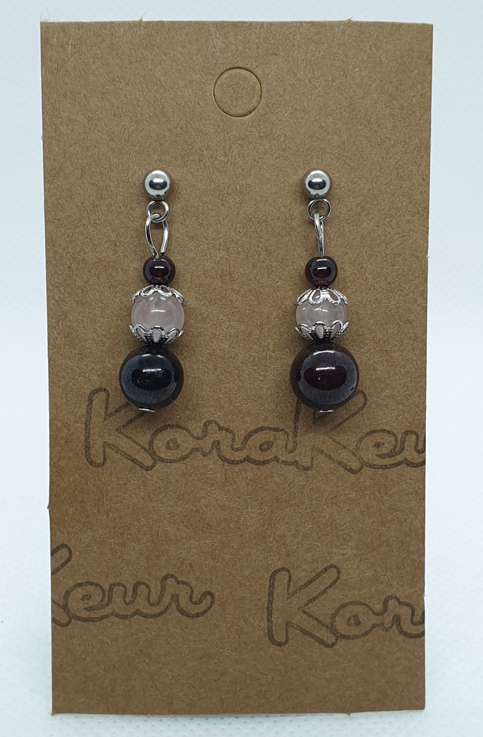 Pendants d’oreilles en grenat et quartz fraise
